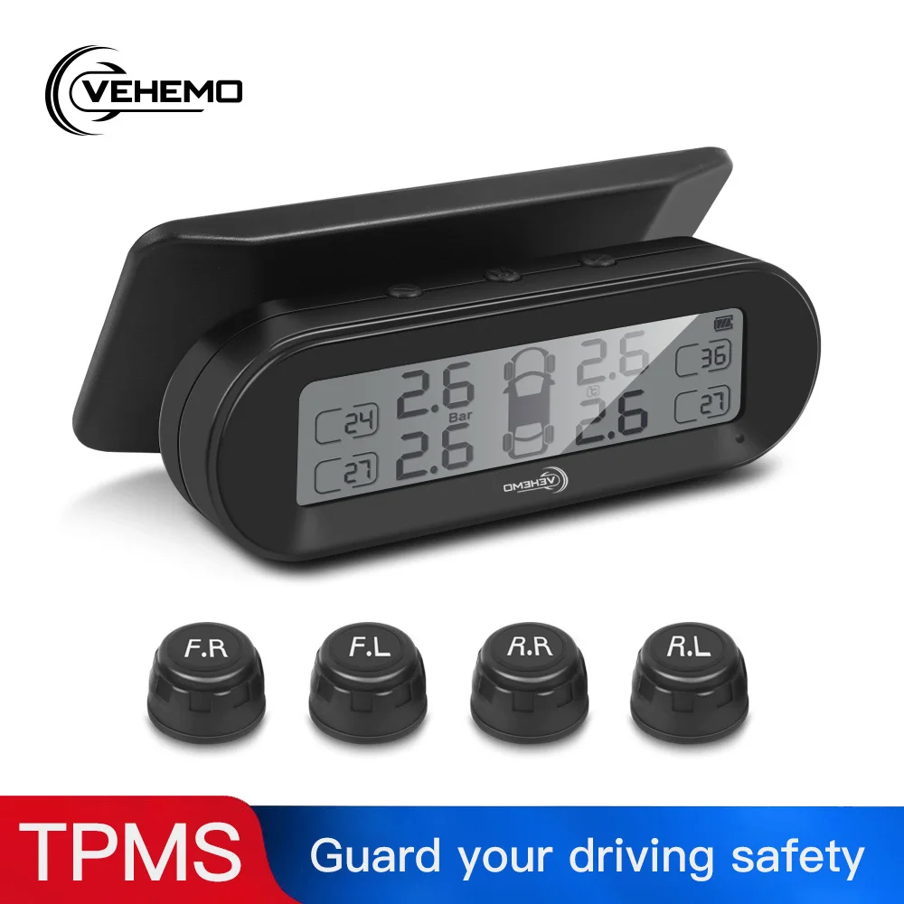 HIGH QUALITY Vehemo Wireless TPMS Tire Pressure External Sensor Real-Time Display LCD Solar Power Gauge Tyre Ant